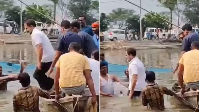 - राहुल गांधी मछुआरों के साथ तालाब में गए, नाव चलाई और मछली पकड़ने की प्रक्रिया में खुद हिस्सा लिया।